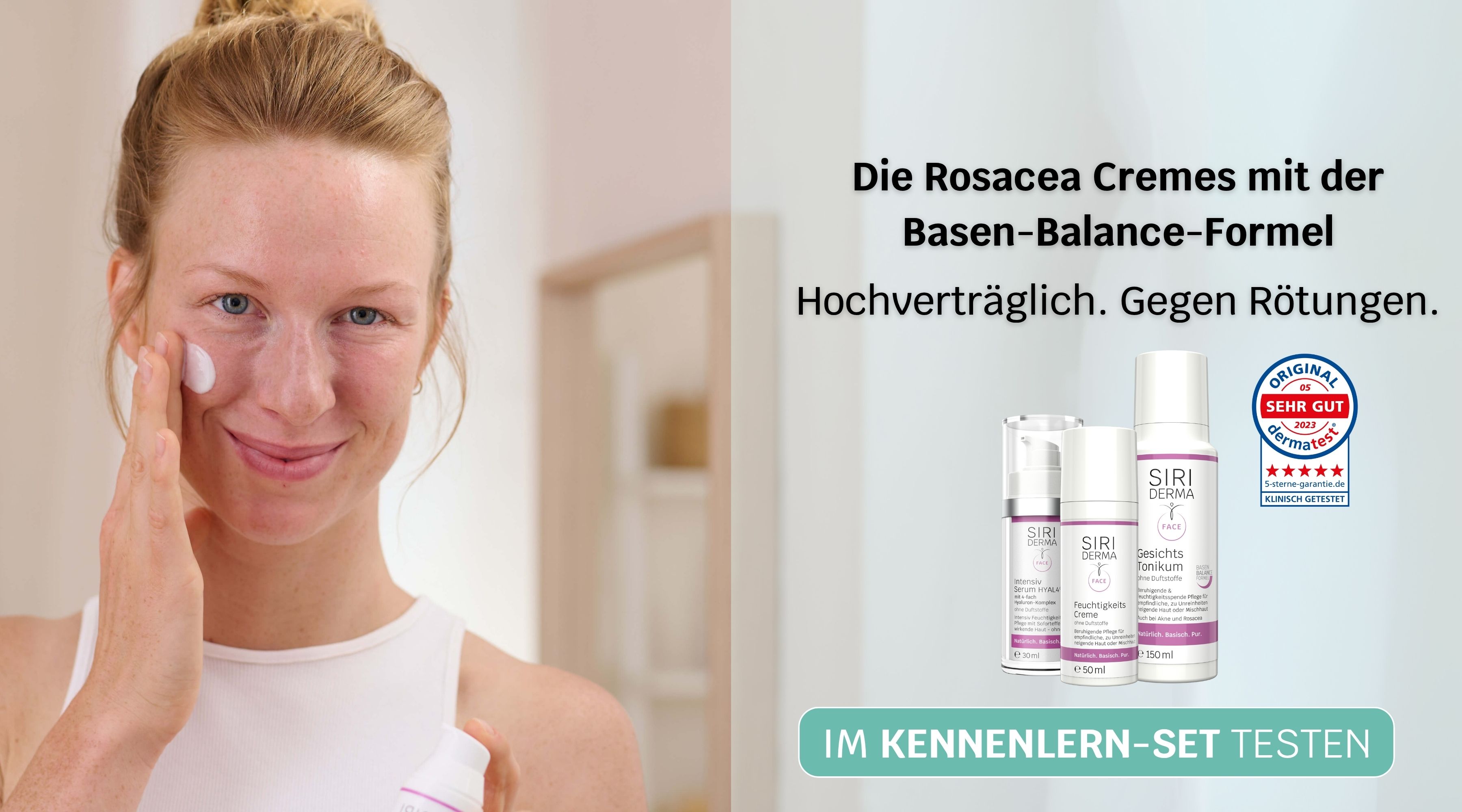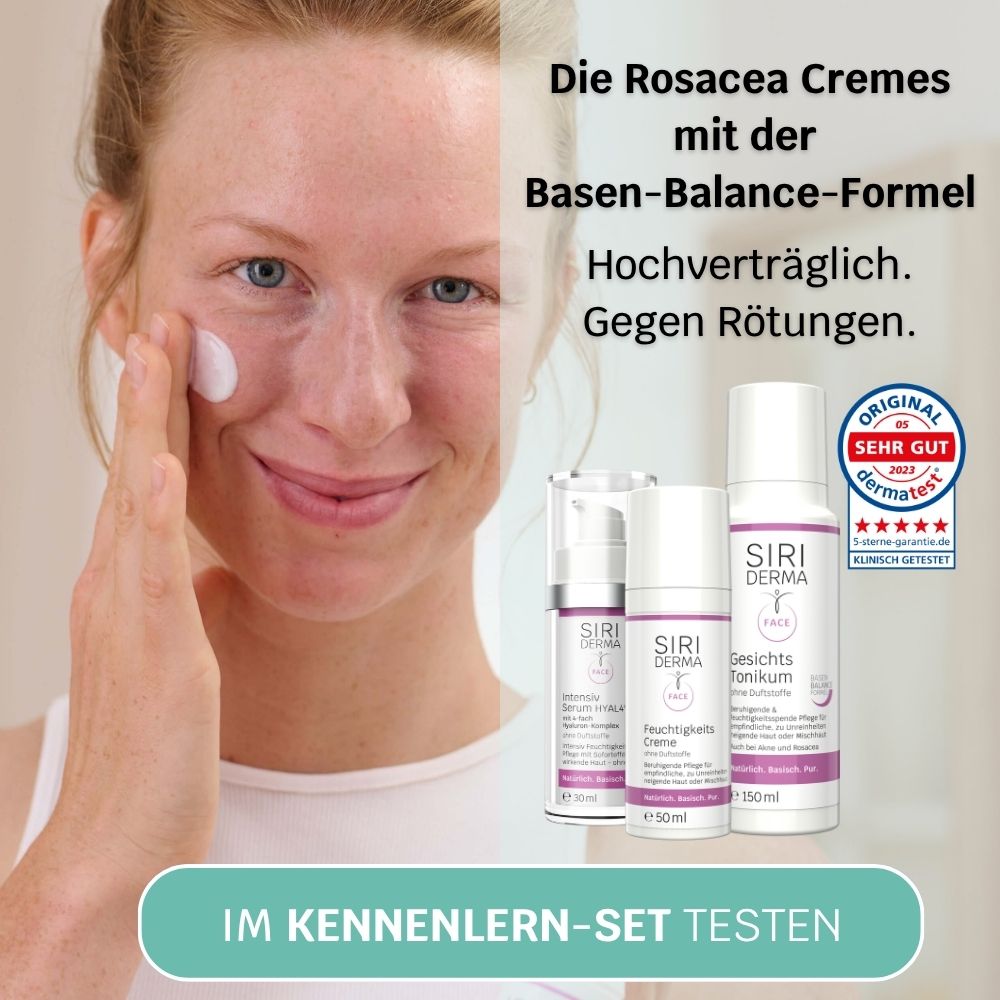 Ja, die SIRIDERMA Produkte im Kennenlern-Set wurden speziell für sehr sensible Haut entwickelt und ihre Wirksamkeit und Verträglichkeit auch bei Menschen mit Rosacea ist klinisch bestätigt durch Untersuchungen des unabhängigen Testinstituts dermatest®.